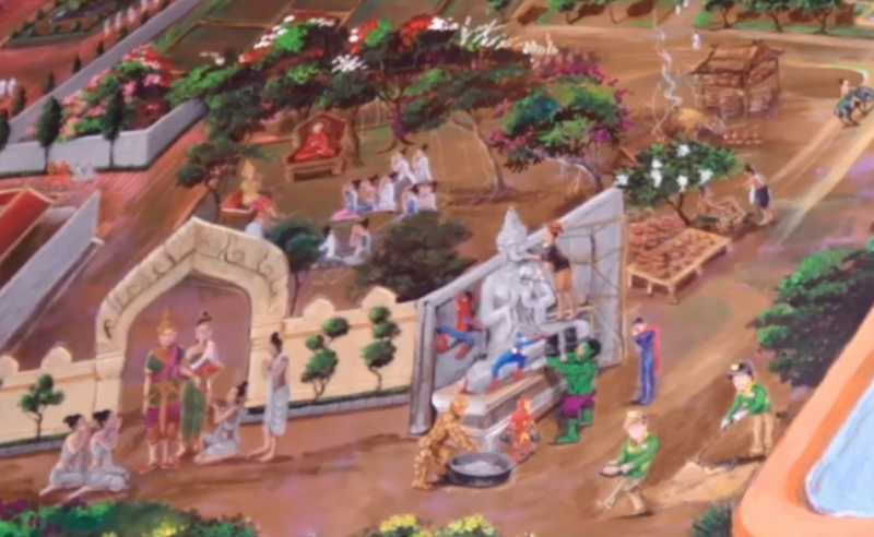 ซึ่งมองดูแล้วประเทศไทยมีความ ขัด เเย้ง มาก จึงนำภาพของสองคนมาเป็นตัวอย่าง และประชาชนจะได้รู้ว่าหากเป็นคนดีจะมีภาพวาดภายในโบสถฺ์ และขอขอบคุณที่ไม่ตำหนิติเตียนทางวัดที่ไม่ได้ขออนุญาติวาดภาพลงฝาผนัง