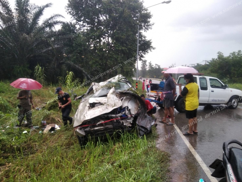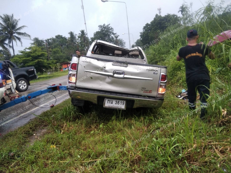 จากการสอบถามทราบว่าก่อนเกิดเหตุคนขับได้ขังรถมาพร้อมภรรยา เดินทางมาจาก อ.เขาพนม จ.กระบี่ มุ่งหน้ามา อ.ทุ่งใหญ่ จ.นครศรีธรรมราช มาถึงที่เกิดเหตุฝนตกหนักถนนลื่นรถหมุนคว้างกลางถนนก่อนพุ่งลงข้างทางพลิกคว่ำตีลังกาสองตลบก่อนไปจอดหงายท้องอยู่ข้างทาง จนทำให้มีผู้ได้รับบาดเจ็บดังกล่าว