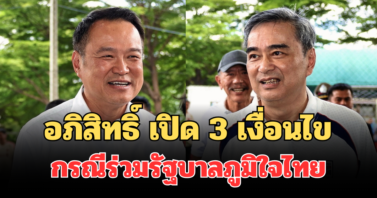 ชัดเจน! อภิสิทธิ์ เปิด 3 เงื่อนไข กรณีร่วมรัฐบาลภูมิใจไทย….ดูเพิ่มเติม