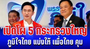คลอดเเล้ว! เปิดโผ 5 กระทรวงใหญ่ ภูมิใจไทย แบ่งให้ เพื่อไทย คุม…ดูเพิ่มเติม