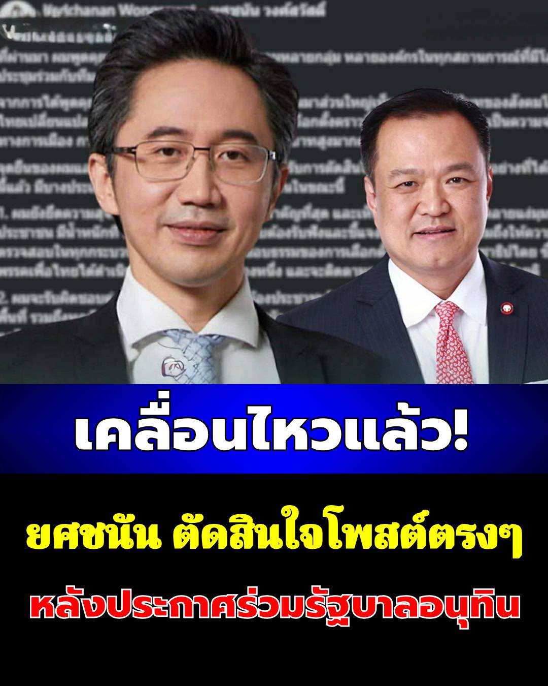 เคลื่อนไหวแล้ว! ยศชนัน ตัดสินใจโพสต์ตรง ๆ หลังประกาศร่วมรัฐบาลอนุทิน…ดูเพิ่มเติม