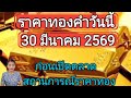 ราคาทองคำประจำวันที่ 30 มี.ค.2569 ปรับลดลง 300 บาท เปรียบเทียบกับราคาสุดท้ายของเมื่อวานนี้ โดยทองรูปพรรณขายออกที่บาทละ 70,600 บาท อ้างอิงข้อมูลล่าสุดจาก สมาคมค้าทองคำ ที่เผยแพร่ผ่านทางเว็บไซต์ เมื่อเวลา 09.03 น.ที่ผ่านมา